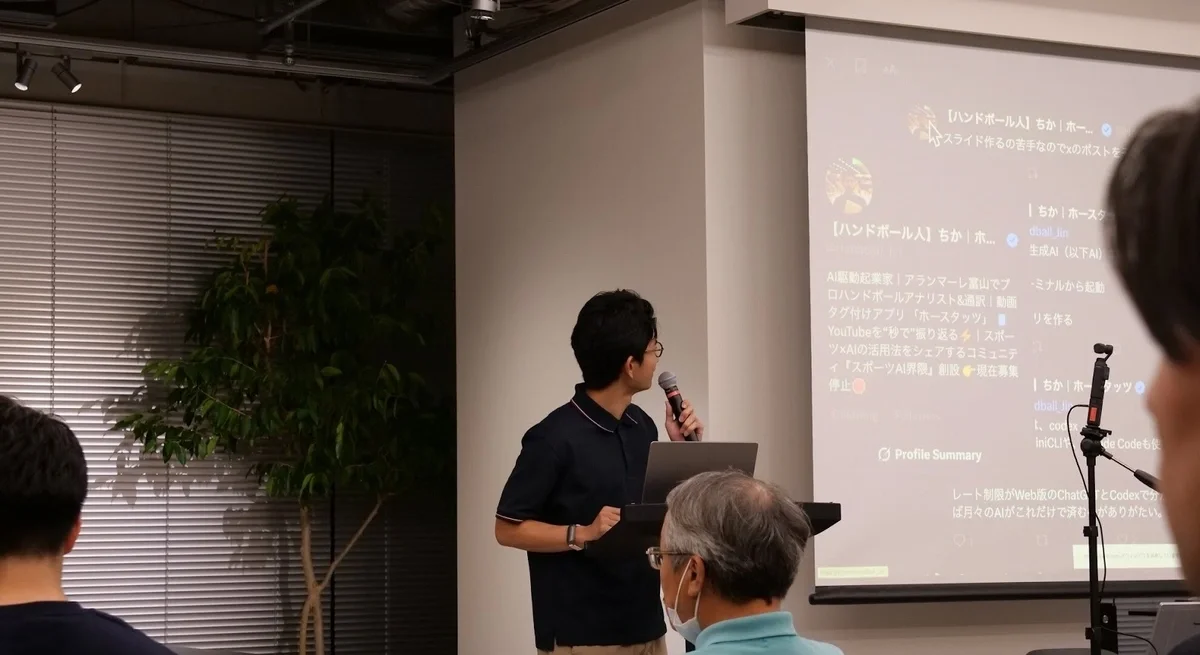As an on-site analyst for a handball team, Chika introduced a practical example of using generative AI as an "everyday auxiliary wheel. The audience nodded in agreement at her many practical tricks, such as the automatic generation of command operations and data formatting. I felt the reality of practitioners when she said, "AI is a tool to be used in the hands of the users.